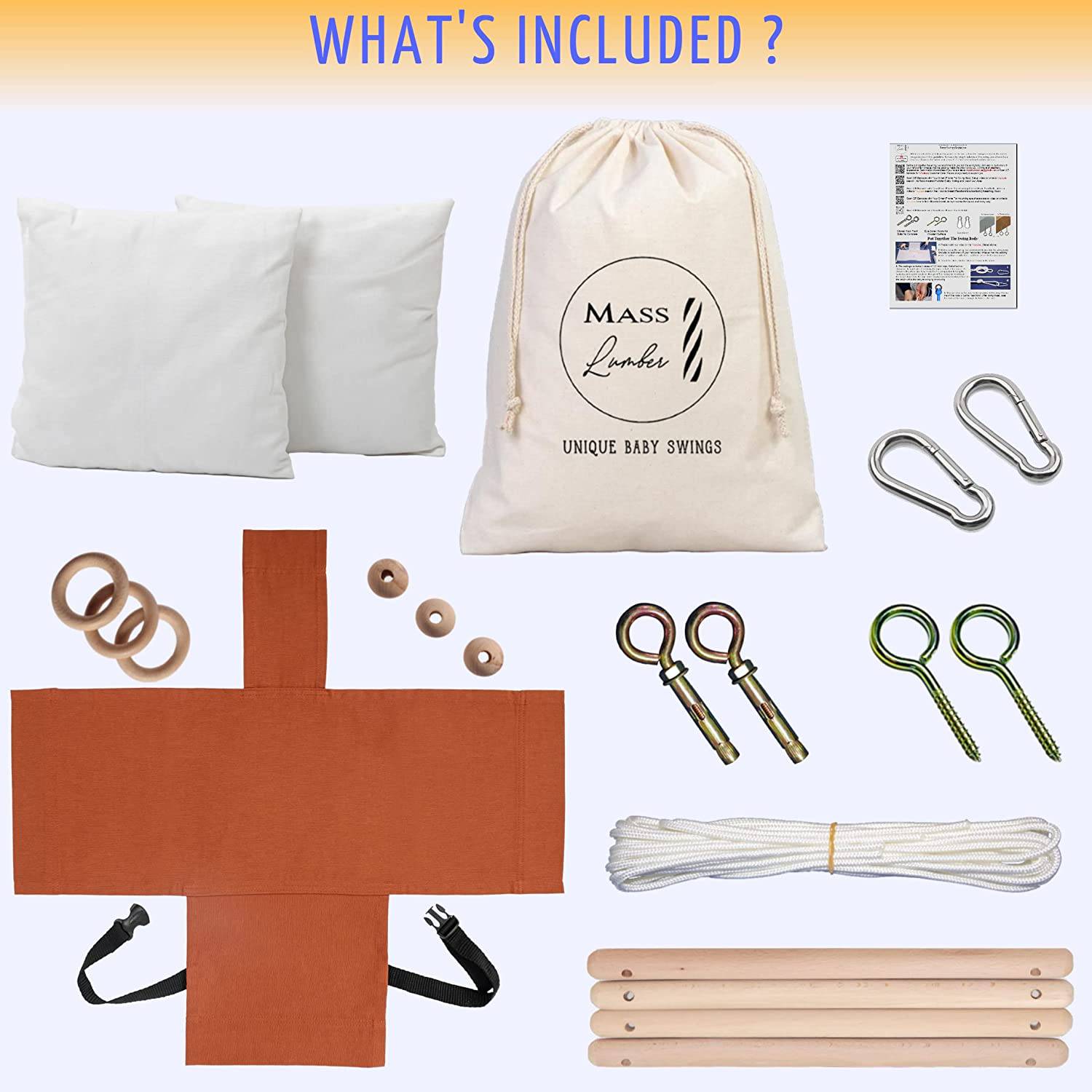 MASS LUMBER - Columpio de lona para interior y exterior para bebé con cinturón, juego para colgar en el techo, bolsa de almacenamiento, (canela)