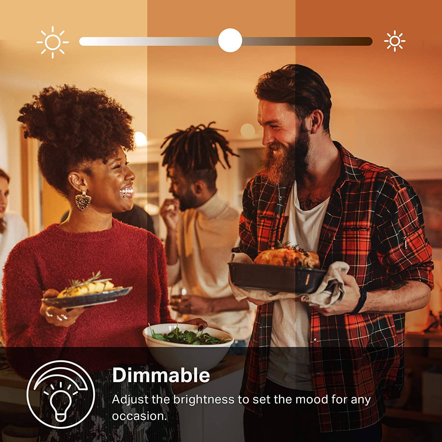 • Establezca el estado de ánimo con un estilo atemporal; Suba el brillo para animar la fiesta o baje las luces para una velada romántica; La bombilla de filamento LED Kasa de 40 vatios (400 lúmenes) le permite crear el ambiente con una estética vintage infundida con tecnología moderna, todo desde su teléfono inteligente