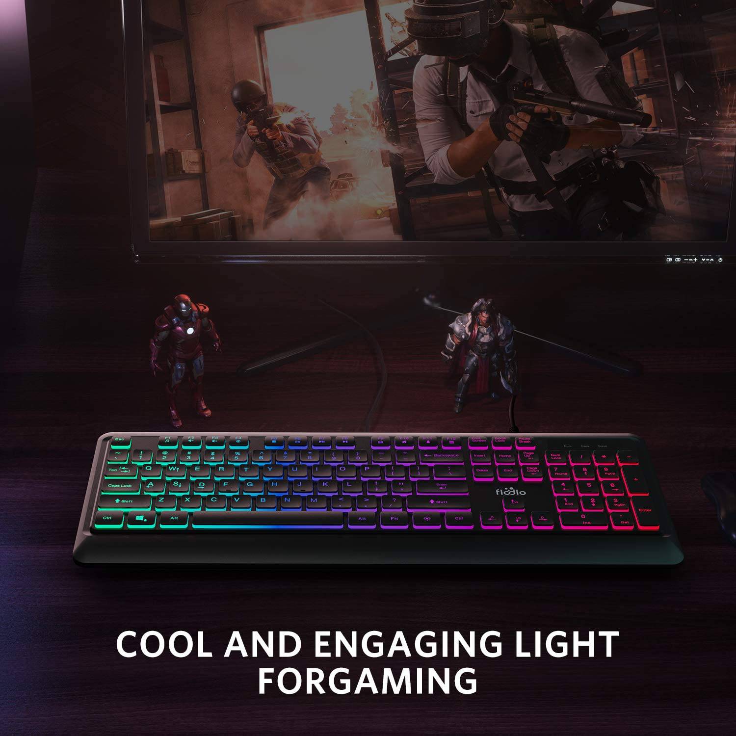 Fiodio Rainbow Membrane Gaming Keyboard, Silent Wired Computer Keyboard, 104 Silent Keys, 26 Anti-Ghosting Keys, Resistente a derrames, Control multimedia para PC y escritorio