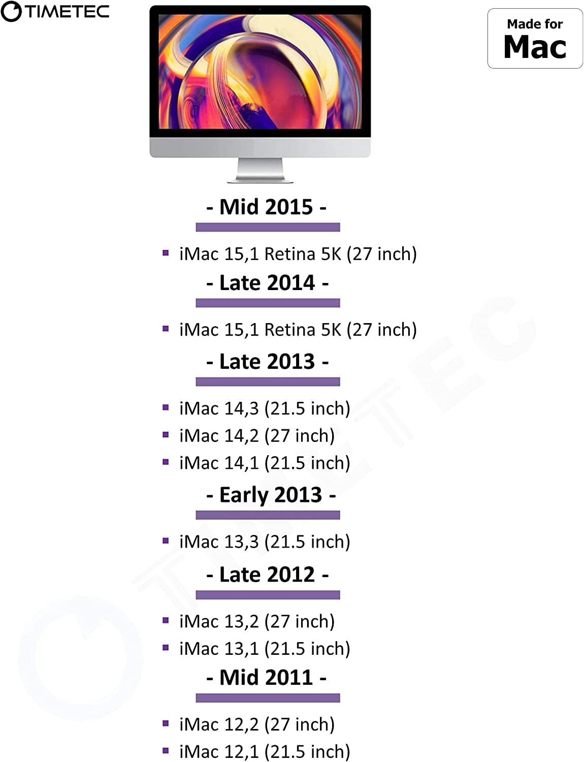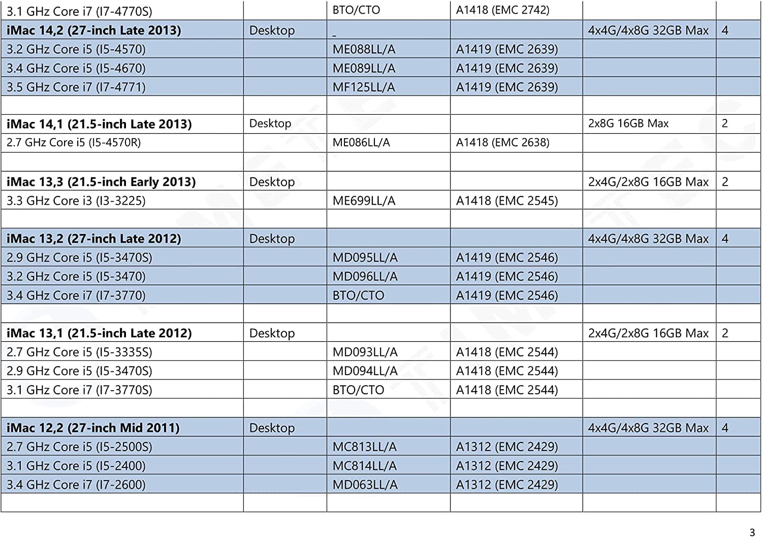 Apple iMac: 21,5 pulgadas/27 pulgadas, mediados de 2011, 21,5 pulgadas/27 pulgadas, finales de 2012, 21,5 pulgadas, principios de 2013, 27 pulgadas, finales de 2013, 21,5 pulgadas/27 pulgadas, finales de 2014, 27 pulgadas, mediados de 2015 - iMac12,1 iMac12,2 iMac13,1 iMac13,2 iMac13,3 iMac14,1 iMac14,2 iMac14,3 iMac15,1