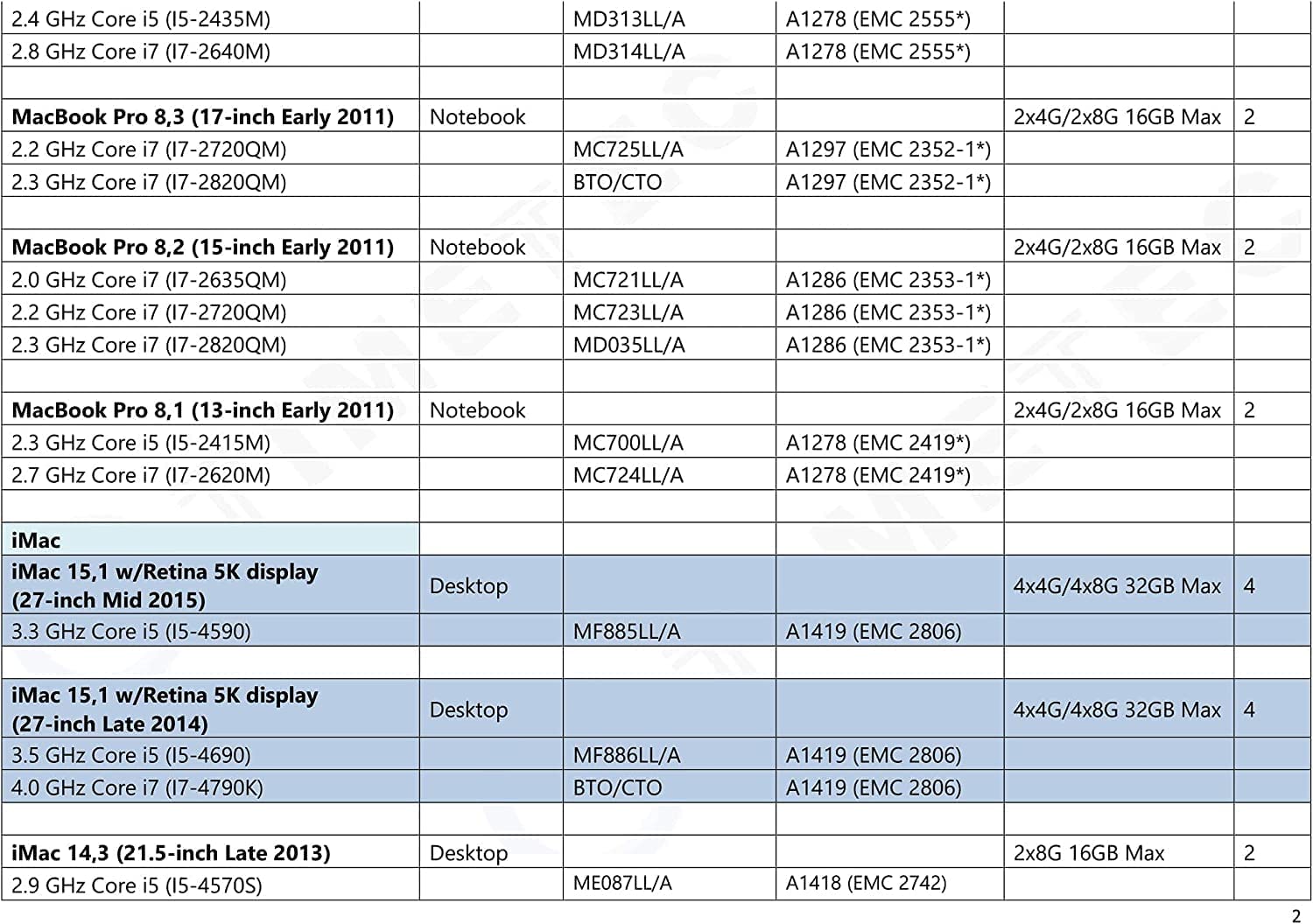 - Compatibilidades módulo de memoria ram: MacBook, MacBook Pro, iMac, Mac Mini