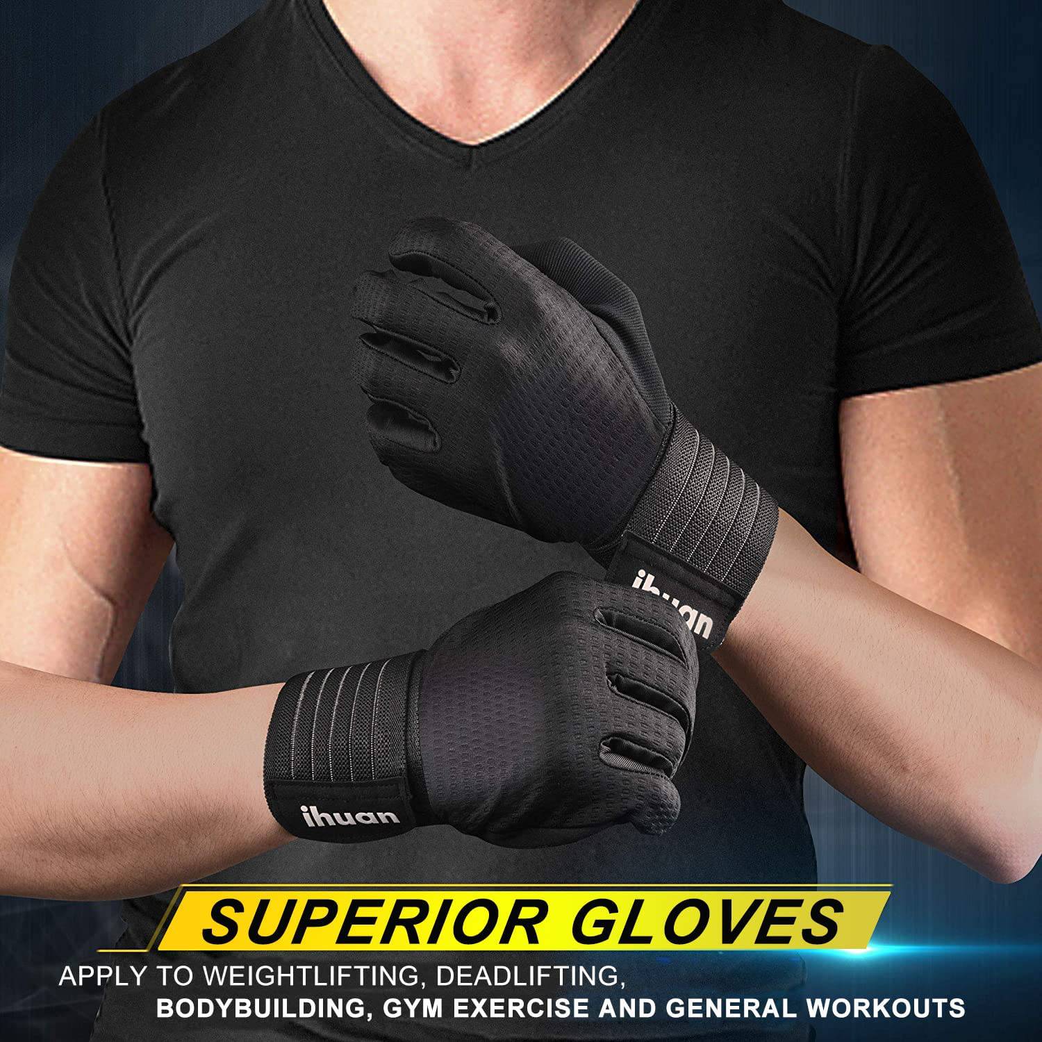 Ihuan - Guantes de entrenamiento para hombres de dedo completo: guantes de levantamiento de pesas para hombres, guantes de levantamiento de gimnasio guantes de mano completa