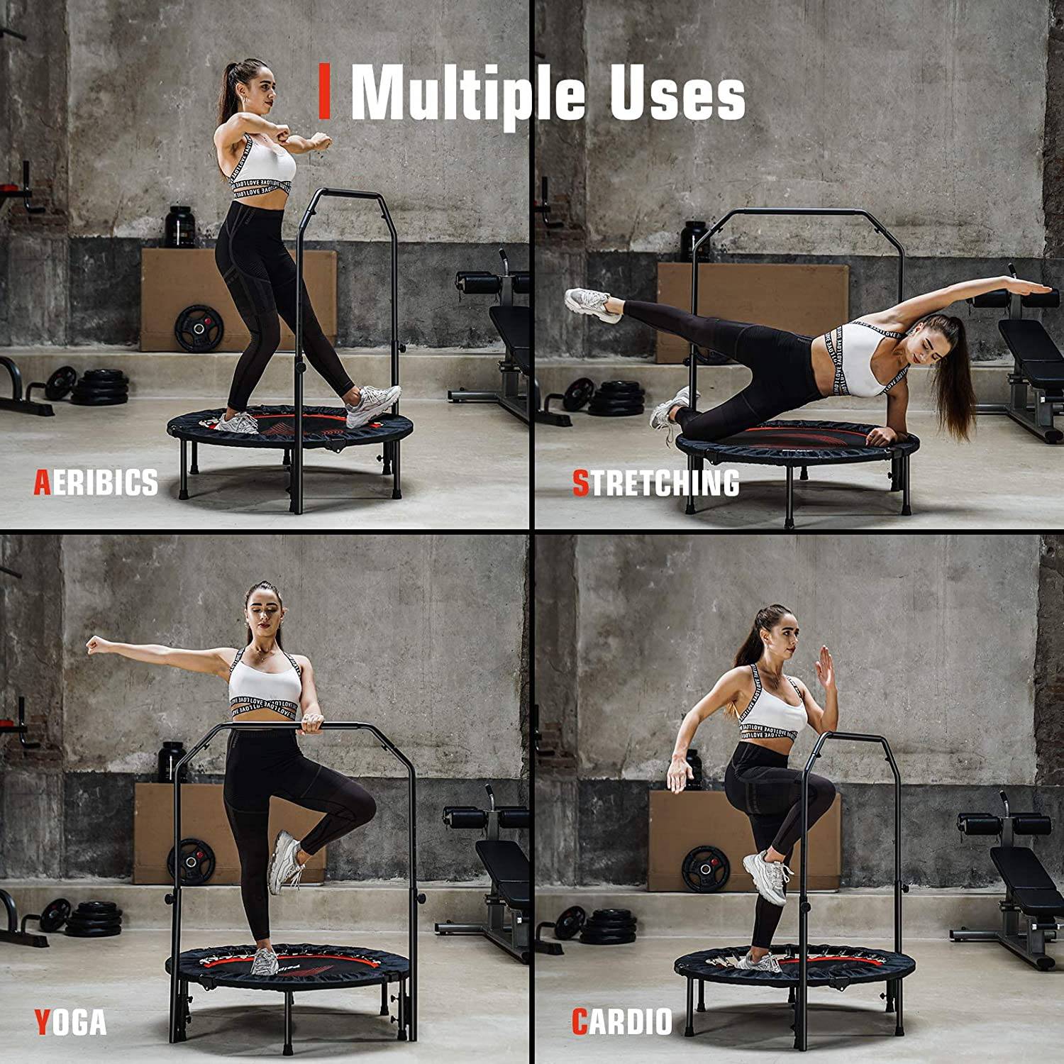 Pelpo 38" Mini trampolín plegable, trampolín de ejercicio con mango de espuma ajustable, trampolín reboteador para adultos Fitness, trampolín interior para entrenamiento de rebote carga máxima 330 libras