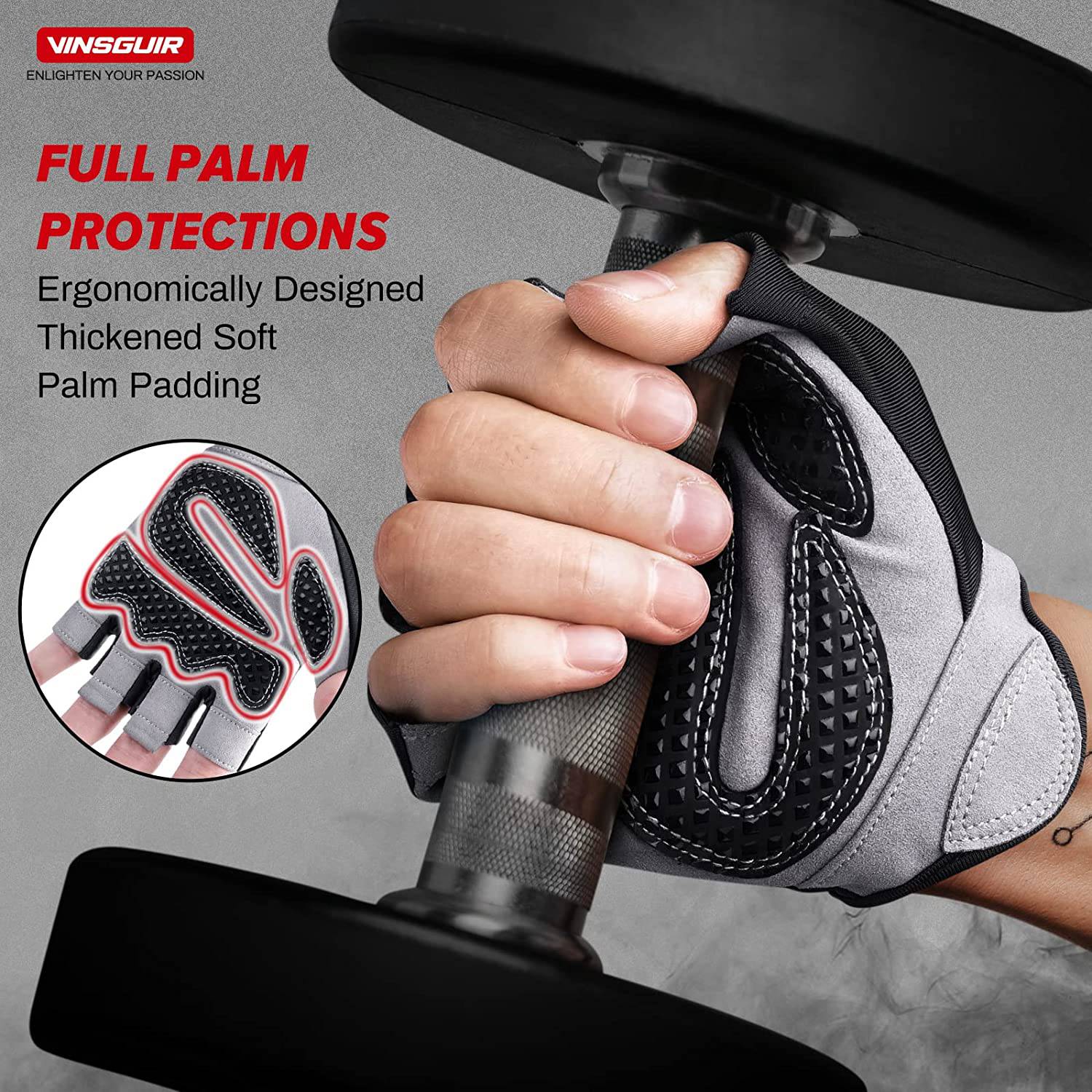 Vinsguir - Guantes de entrenamiento para hombres y mujeres, guantes de levantamiento de pesas sin dedos para ejercicio, guantes de gimnasio ligeros y transpirables