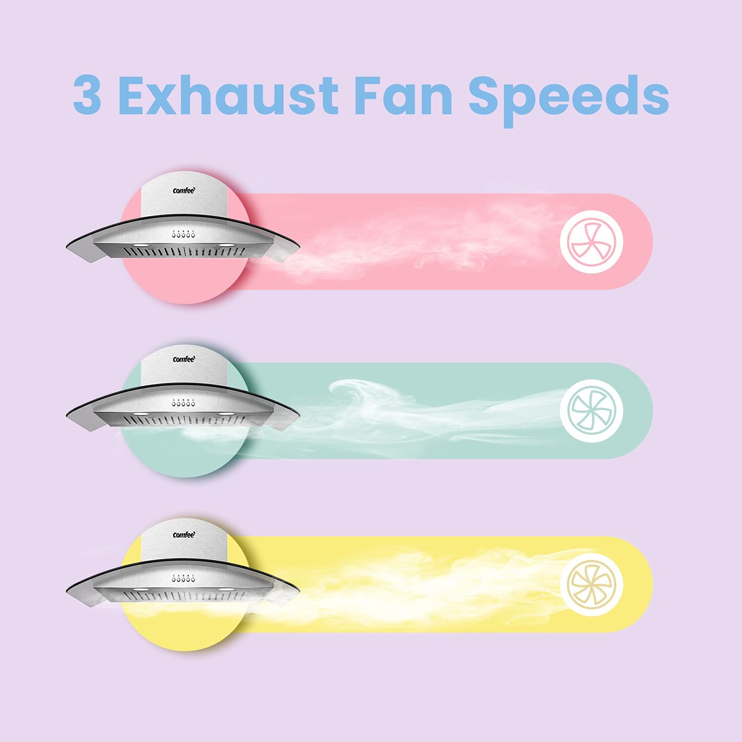 Comfee CVG30W8AST 30 Inches Ducted Wall Mount Vent Range Hood with 450 CFM 3 Speed Exhaust Fan, Baffle Filters, Curved Glass, 2 LED Lights, Convertible to Ductless, Stainless Steel