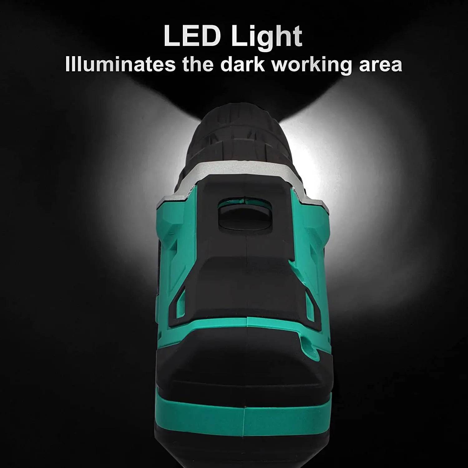Portabrocas de metal sin llave de 3/8 pulgadas y luz de trabajo LED: un taladro inalámbrico de 3/8 pulgadas acepta una amplia gama de brocas, por lo que es versátil para tareas comunes en la casa. El taladro tiene portabrocas sin llave que puedes apretar o aflojar a mano. El interruptor de avance/marcha atrás te permite atornillar o reemplazar/quitar brocas para tus propósitos. Luz LED para mayor visibilidad en espacios de trabajo cerrados y entornos oscuros.