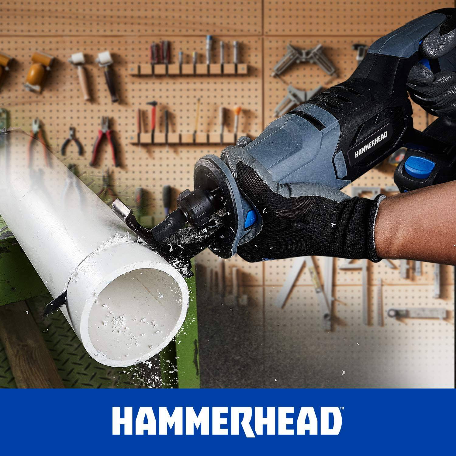 Hammerhead Kit de sierra recíproca inalámbrica de 20 V con batería de 2,0 Ah, cargador, hoja para cortar madera - HCRS201