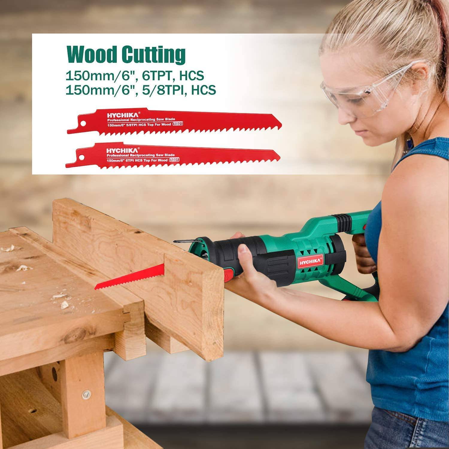 HYCHIKA Sierra alternativa inalámbrica 20V 2Ah 2 baterías 4 hojas de sierra, 0-2800SPM Velocidad variable, 7/8 "Longitud de carrera Cambio de hoja sin herramientas Luz LED para poda de corte de madera y metal
