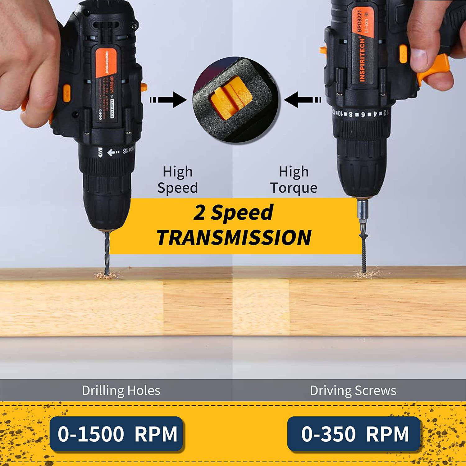 INSPIRITECH Taladro inalámbrico de 21 V con 2 baterías y cargador, juego de brocas eléctricas sin llave de 3/8 pulgadas, 2 destornilladores eléctricos de velocidad variable, ajuste de par de 19 con brocas de taladro/destornillador