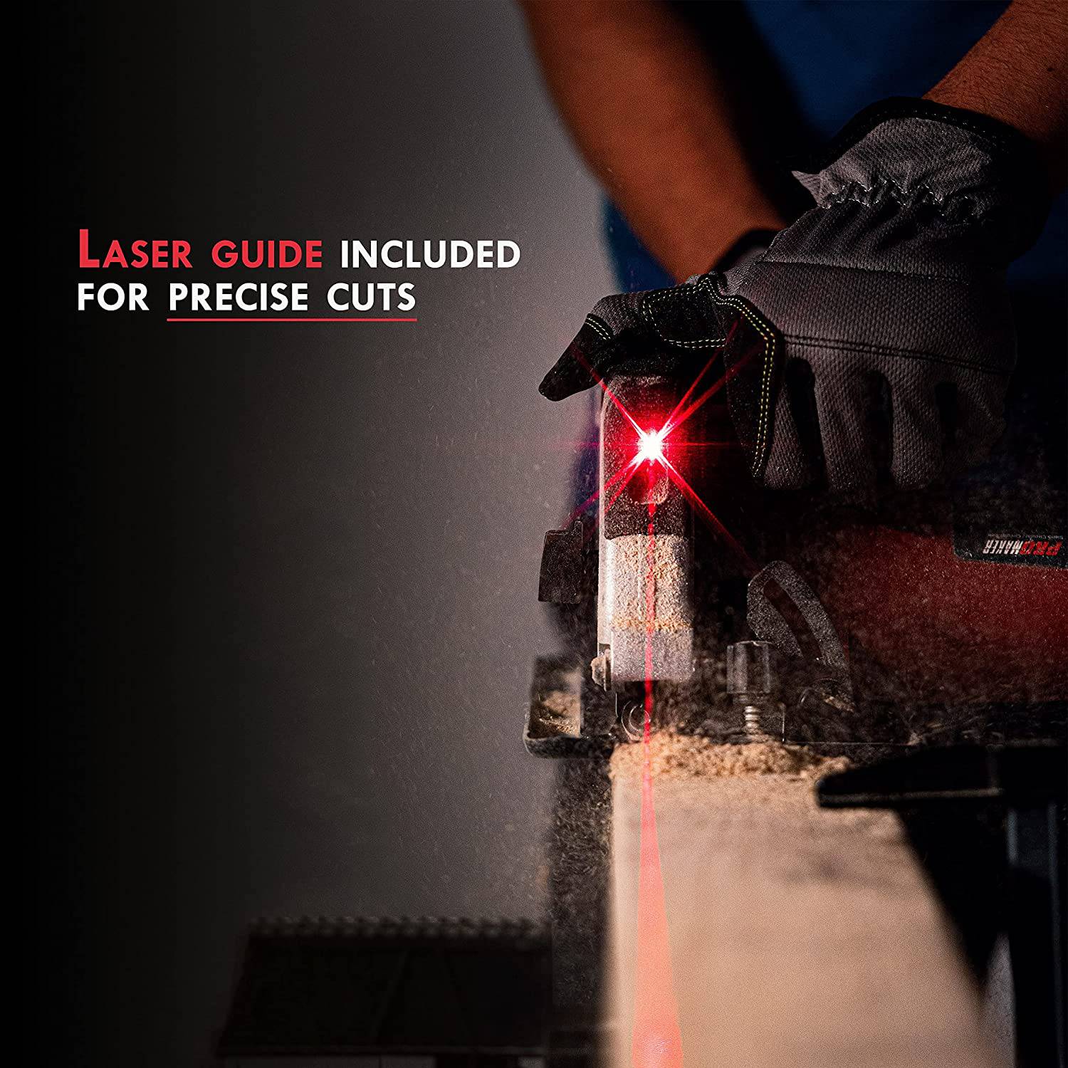 CARACTERÍSTICAS PREMIUM: GUÍA DE CORTE LÁSER Y LED LUMINMAX]: realice cortes más limpios y precisos con funciones profesionales premium. Cuenta con una guía de corte por láser opcional para realizar cortes perfectamente rectos. ¿Hacer cortes en espacios oscuros? Ilumine su superficie de trabajo antes de cortar con la luz LED LUMINMAX incluida.