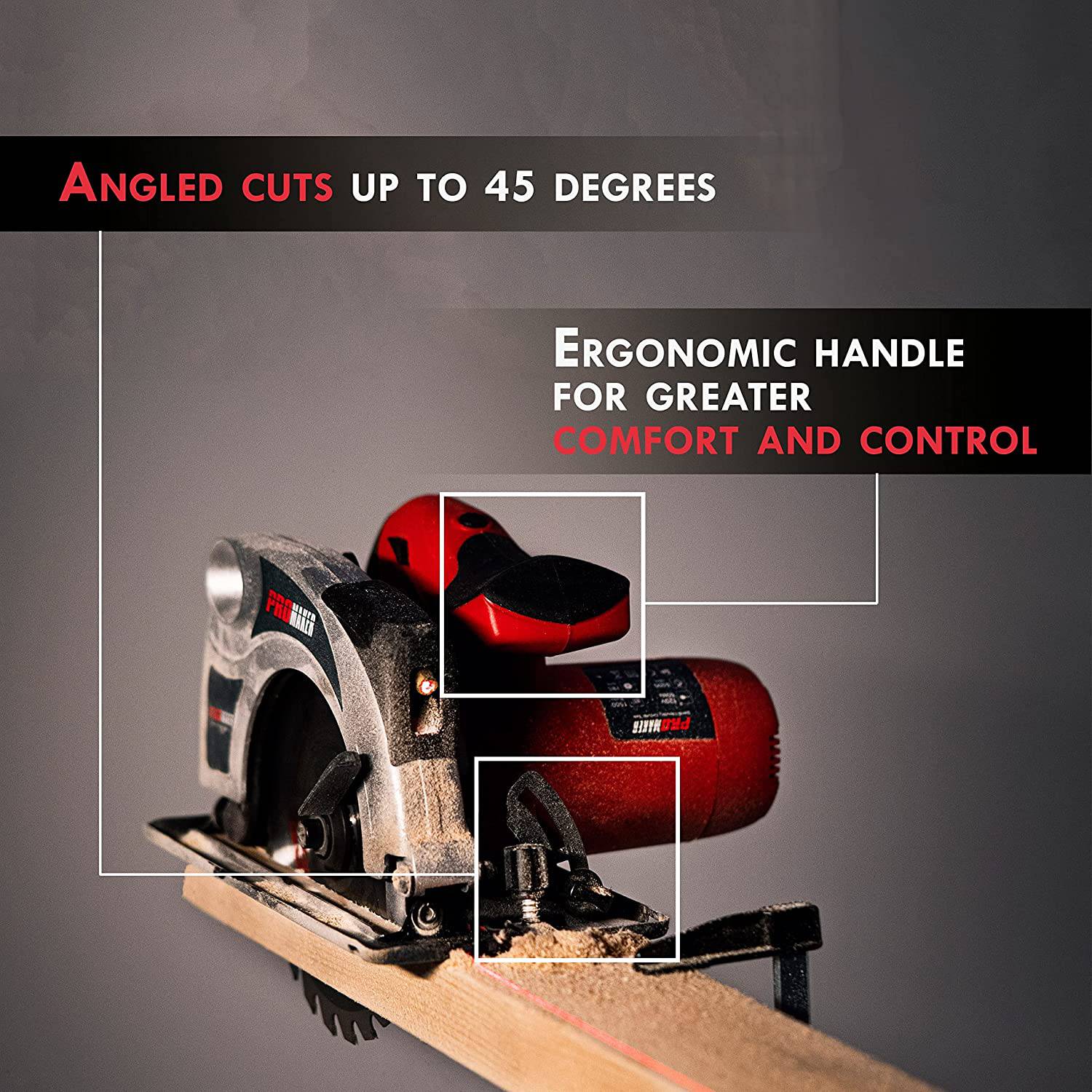 PROFUNDIDAD DE CORTE PROFUNDO Y SEGURO EN CUALQUIER ÁNGULO]: corte material más profundo que la mayoría de las sierras circulares inalámbricas de 6-1/2". Corta hasta 2-1/4” a 90° y hasta 1,65” a 45°. Cuenta con un protector de hoja de metal para mayor protección en comparación con los protectores de hoja de plástico que pueden agrietarse y doblarse durante el uso.