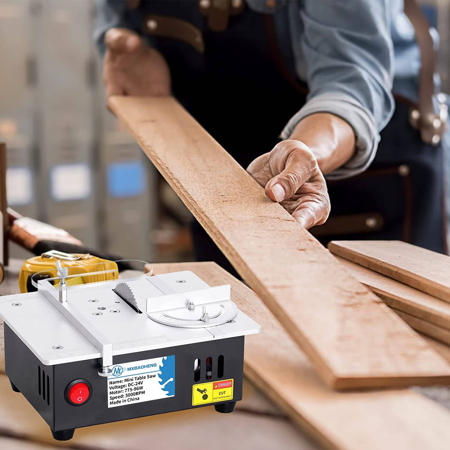 MXBAOHENG Mini sierra de mesa de precisión portátiles para manualidades, profundidad de corte ajustable, 4 cuchillas, fuente de alimentación de velocidad ajustable de 96 W, para corte de madera, metal y plástico