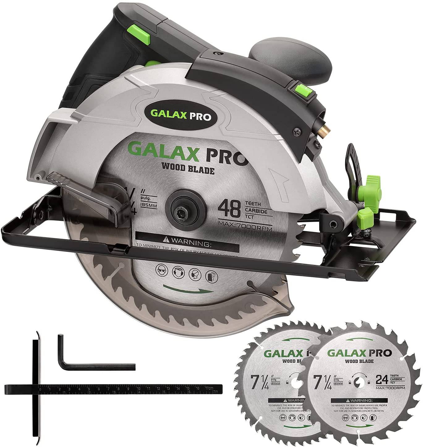 Sierra circular con cable GALAX PRO 12A 5500RPM con hoja de sierra circular de 7-1/4" y guía láser Profundidad máxima de corte 2.45" (90°), 1.81" (45°) para cortar madera y troncos