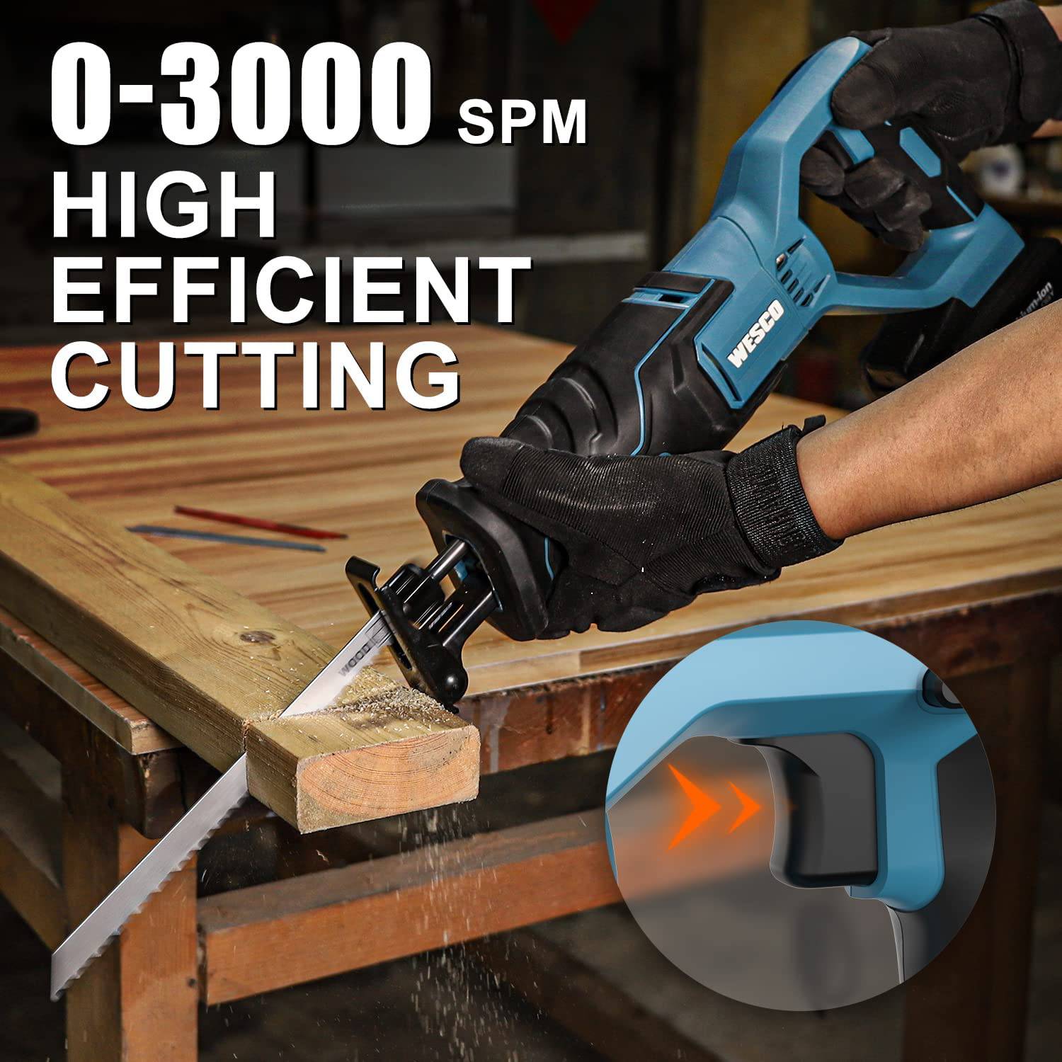 WESCO Sierra de sable inalámbrica de 20 V con 1 batería de 4,0 Ah, 6 hojas de sierra, velocidad variable 3000 SPM, longitud de carrera de 3/4", cambio de hoja sin herramientas
