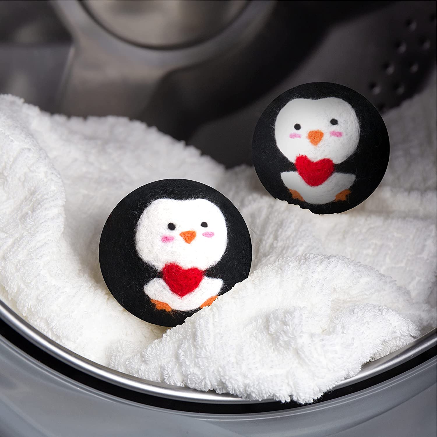 Calindiana - Bolas para secadora de lana de Nueva Zelanda 100% orgánicas de primera calidad, suavizante de tela reutilizable para la colada, bonita alternativa a las hojas de secadora, antiestático, tamaño XL, paquete de 6, pingüino negro está agotado y se enviará tan pronto como vuelva a estar disponible.