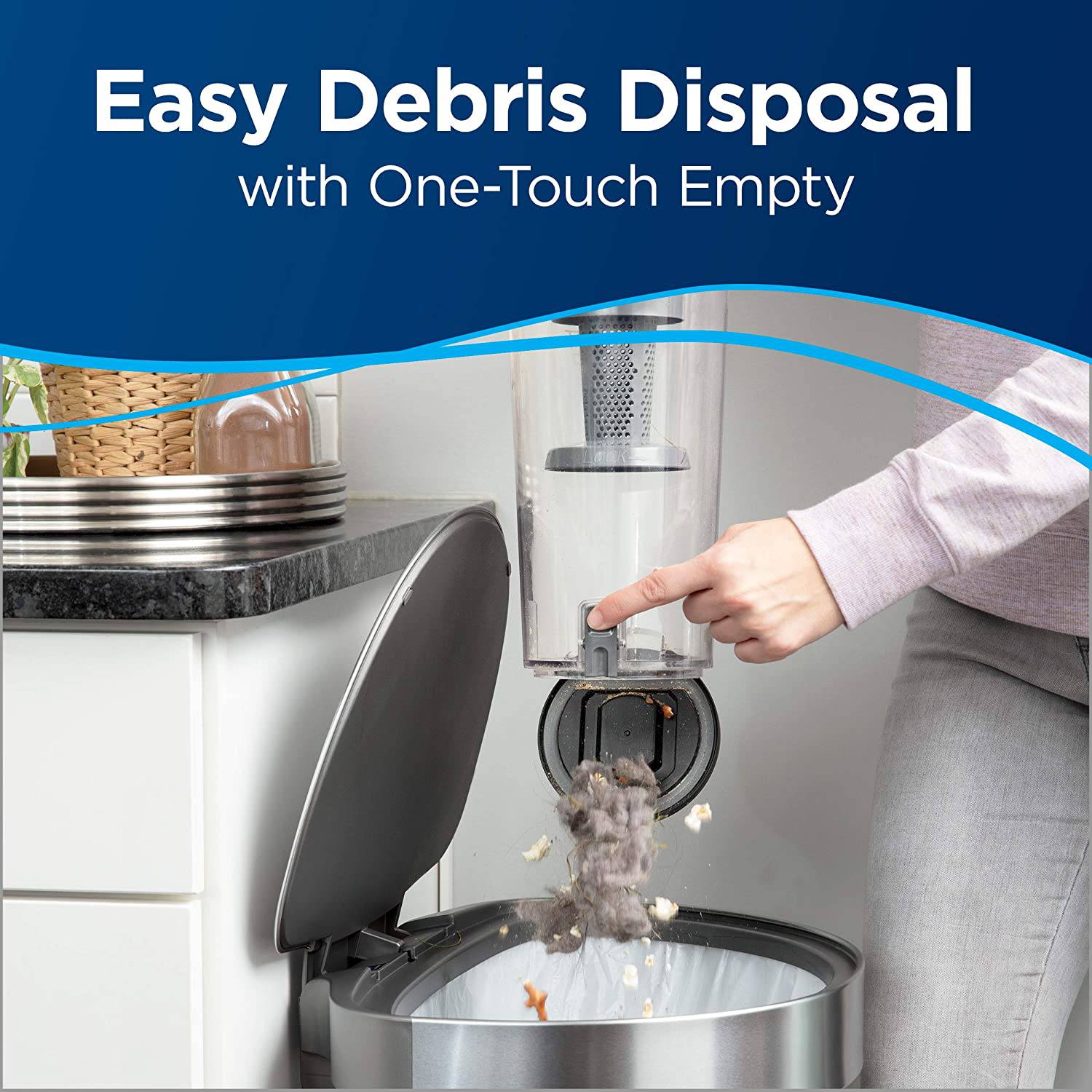 El tanque de suciedad vacío en la parte inferior desecha los desechos fácilmente y sin desorden con solo tocar un botón
