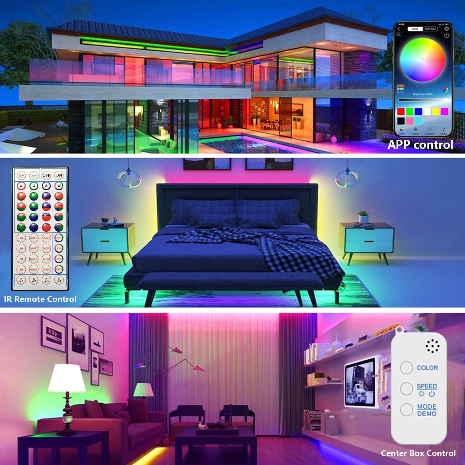 Tiras de luz Rgb para múltiples escenas - Las luces de cinta LED que cambian de color de 32.8 pies se pueden usar para decorar su comedor, dormitorio, piso de arriba, cocina, porche, escritorio de computadora, árbol de Navidad, bar y salas de estar, especialmente ideales para vacaciones y eventos como Navidad, Halloween, fiestas y más. Es un regalo ideal para su familia y amigos.