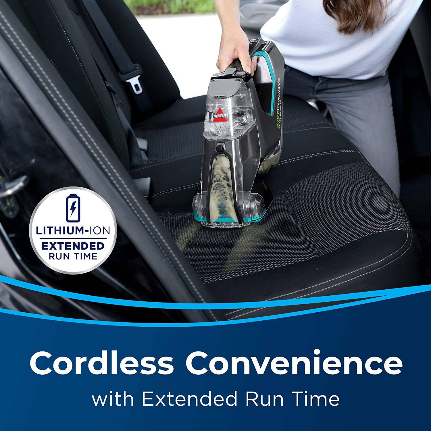 El potente cepillo giratorio DirtLifter PowerBrush ayuda a aflojar, levantar y eliminar las manchas difíciles de mascotas, mientras que la batería de iones de litio proporciona un tiempo de funcionamiento prolongado para la limpieza inalámbrica.