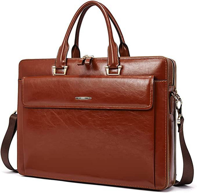 Material: el maletín para mujer está hecho de cuero de vaca encerado con aceite y presenta un diseño de moda en una silueta estructurada con dos asas superiores y una correa para el hombro desmontable que ofrece opciones de transporte versátiles. Puedes usarlo como maletín/bolso de hombro y bandolera.
