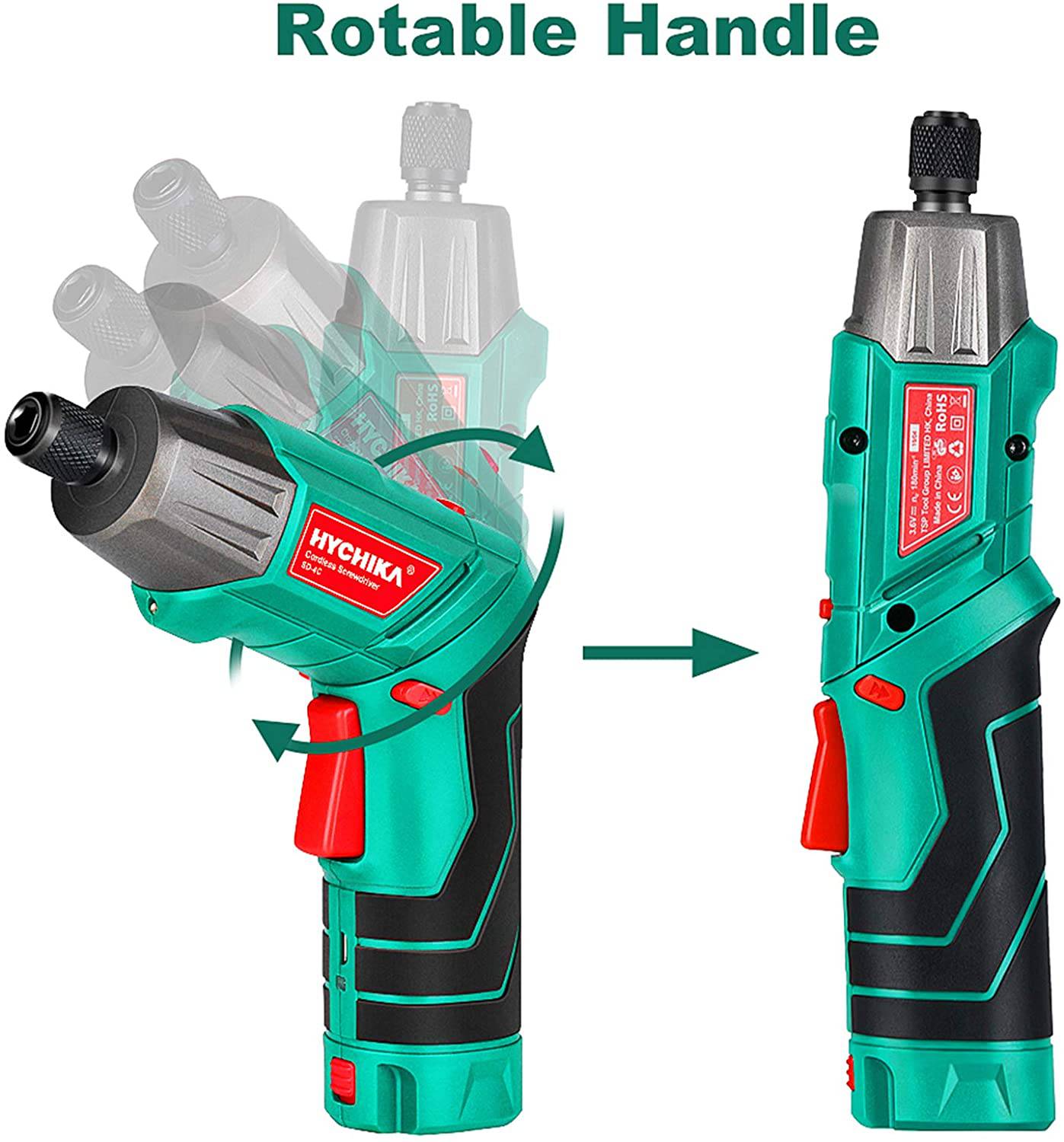 Destornillador inalámbrico 6 N.m, HYCHIKA 4V 2.0Ah Destornillador eléctrico Recargable Pistola y juego de puntas, LED frontal y linterna trasera, Llave de trinquete, Carga de CC con cable USB, 36 piezas Accesorios