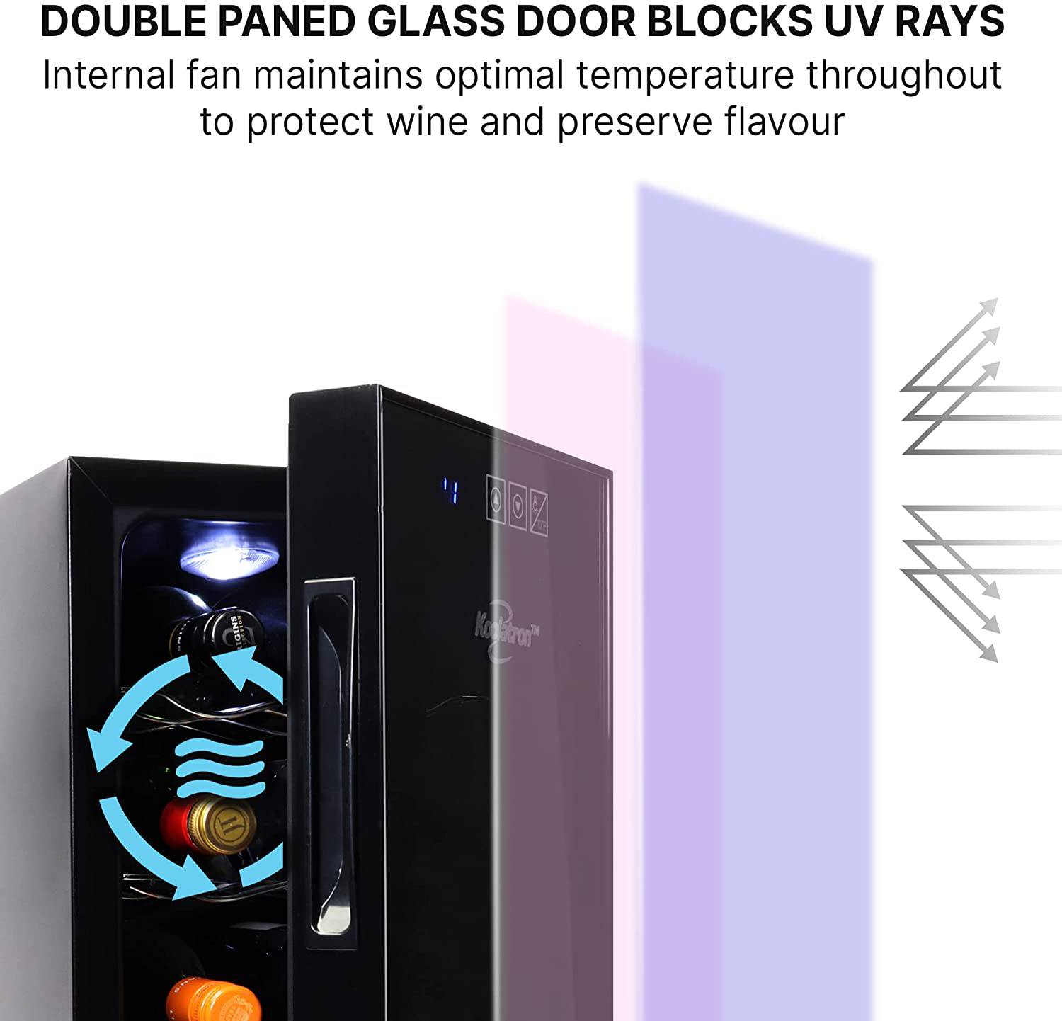 Koolatron - Enfriador de vino de 8 botellas, negro, refrigerador de vino termoeléctrico, 0.8 cu. ft. (23L), Refrigerador independiente para vinos de la serie Urban, almacenamiento de vino