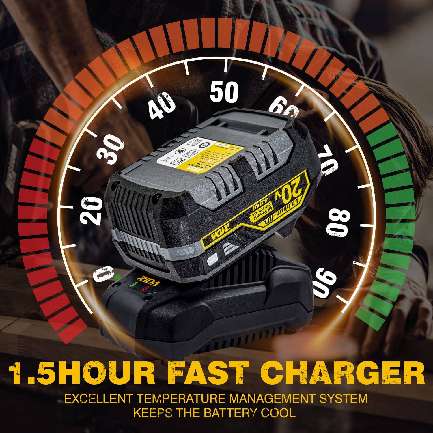 Diseño liviano y trabajo prolongado: el kit de amoladora angular inalámbrica proporciona una herramienta de corte de 4-1 / 2 pulgadas. La amoladora angular con una longitud de 16 pulgadas y un peso de 4,88 libras puede reducir la presión de los usuarios. Batería recargable de iones de litio de gran capacidad de 20 V y 4,0 Ah y cargador rápido de 2,4 A con indicador de estado, puede mantener la amoladora angular inalámbrica funcionando de manera estable durante mucho tiempo, RIDA allana el camino para sus trabajos difíciles, un paquete de batería se adapta a una variedad de potencia instrumentos.