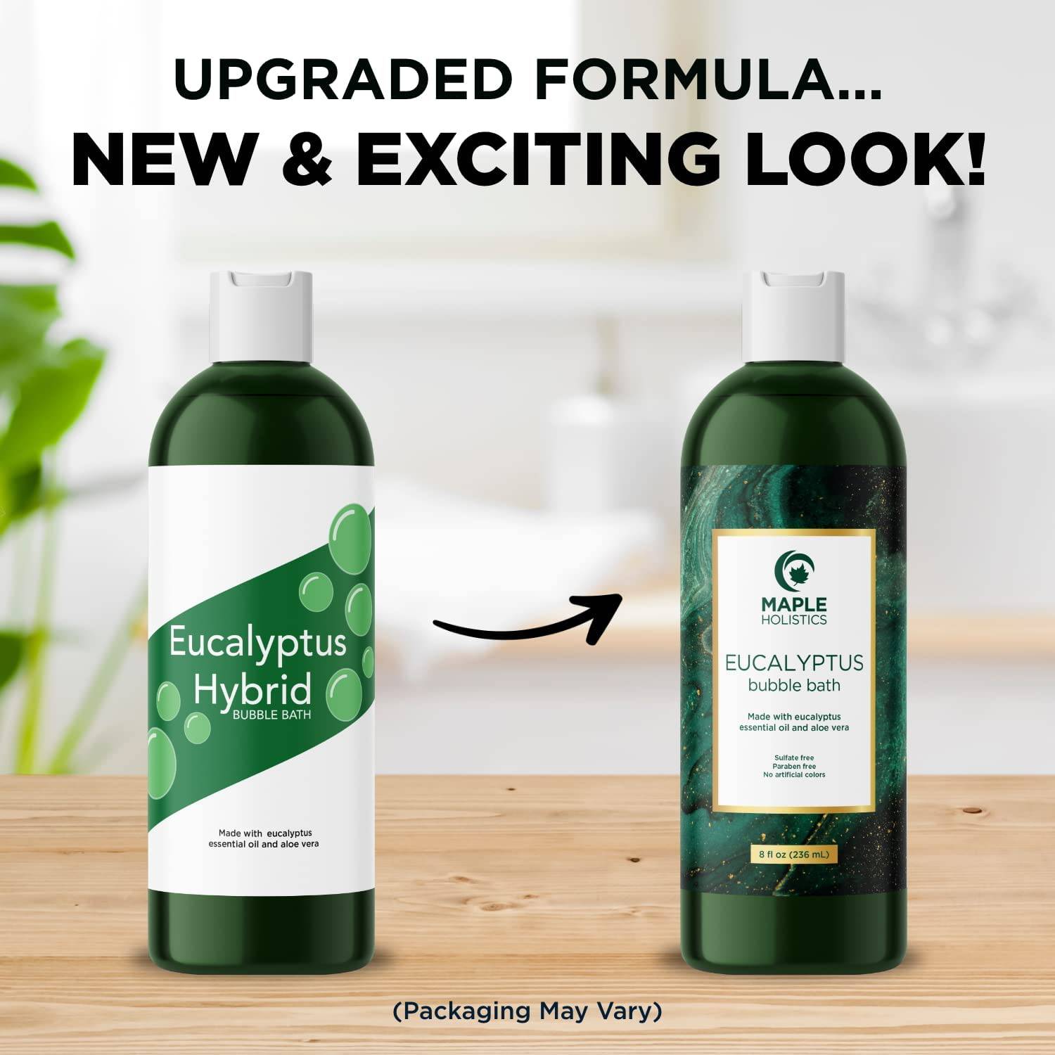 Maple Holistics - Jabón de baño de burbujas de eucalipto premium, baño de burbujas sin sulfato con aceites esenciales relajantes con vitamina E, aceite de baño espumoso para piel seca con aceites de aromaterapia