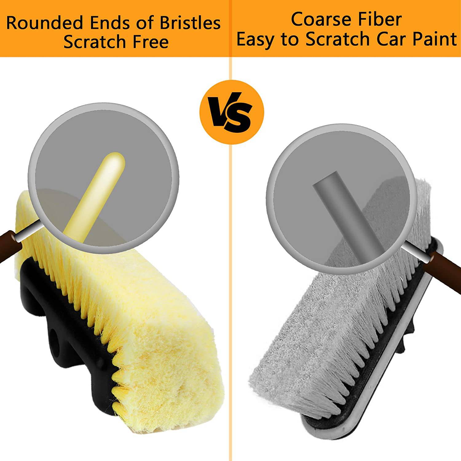 Cerdas suaves que no rayan --- Hechas de cloruro de polivinilo, extraordinariamente suaves y nunca dañan la pintura de la superficie. Cuatrocientas fibras por pulgada, al igual que los dedos, le permiten limpiar áreas curvas.