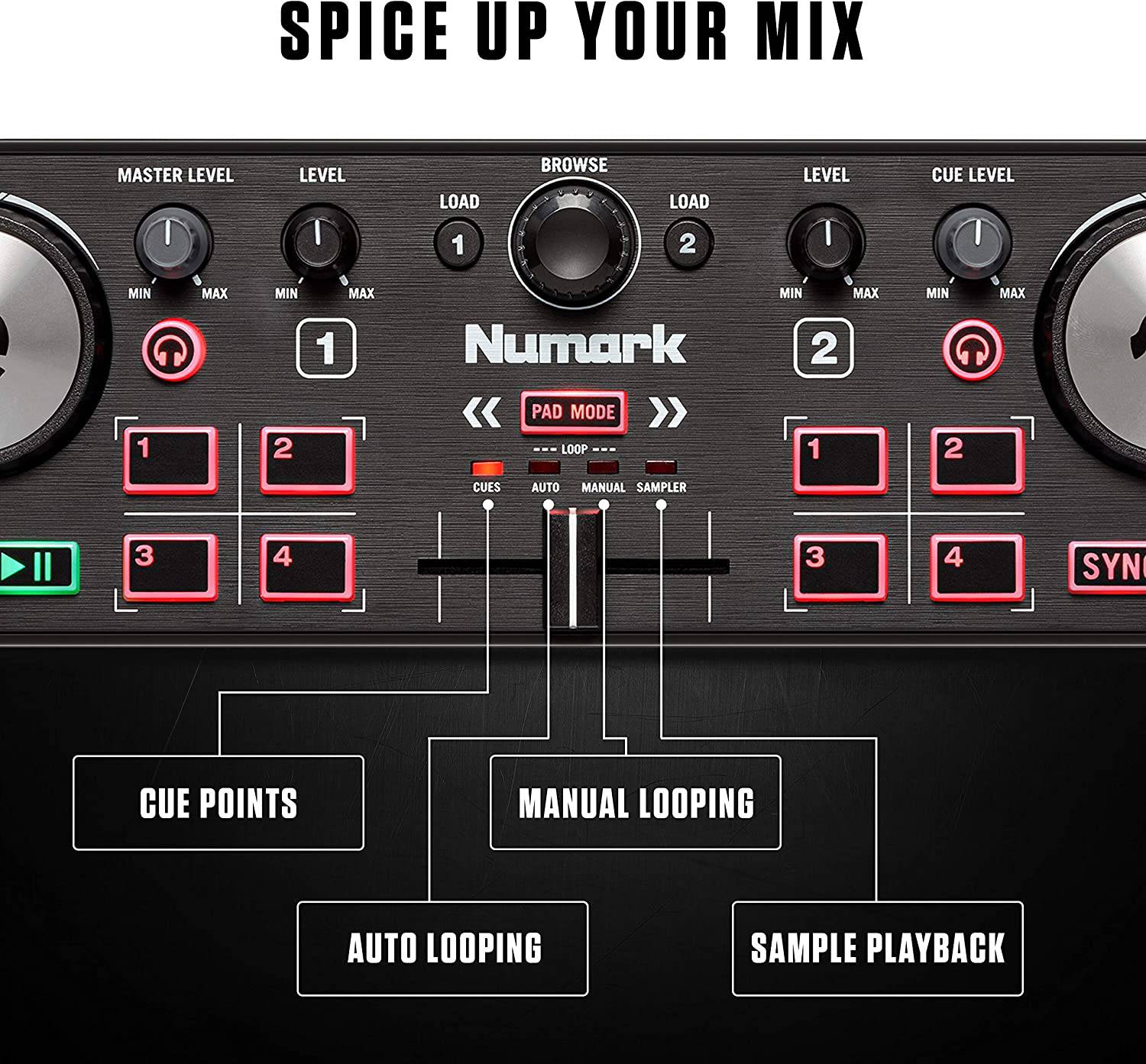 Mejore su rendimiento: 4 modos de pad para un control total de los puntos de referencia, bucles automáticos/manuales y reproducción de muestras para agregar un poco de estilo a su rendimiento