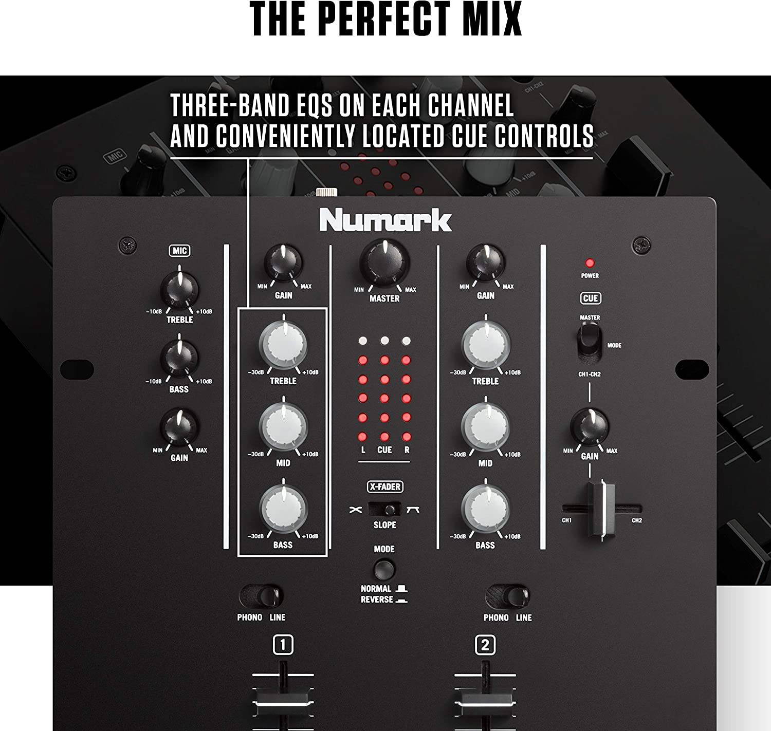 The Perfect Mix: ecualizadores de tres bandas en cada canal y conveniente cueing estilo crossfader; Conectividad para tocadiscos de DJ, reproductores de CD, reproductores multimedia y más