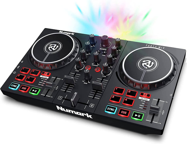 Numark Party Mix II - Controlador de DJ con luces de fiesta, set de DJ con 2 decks, mezclador de DJ, interfaz de audio y conectividad USB + Serato DJ Lite