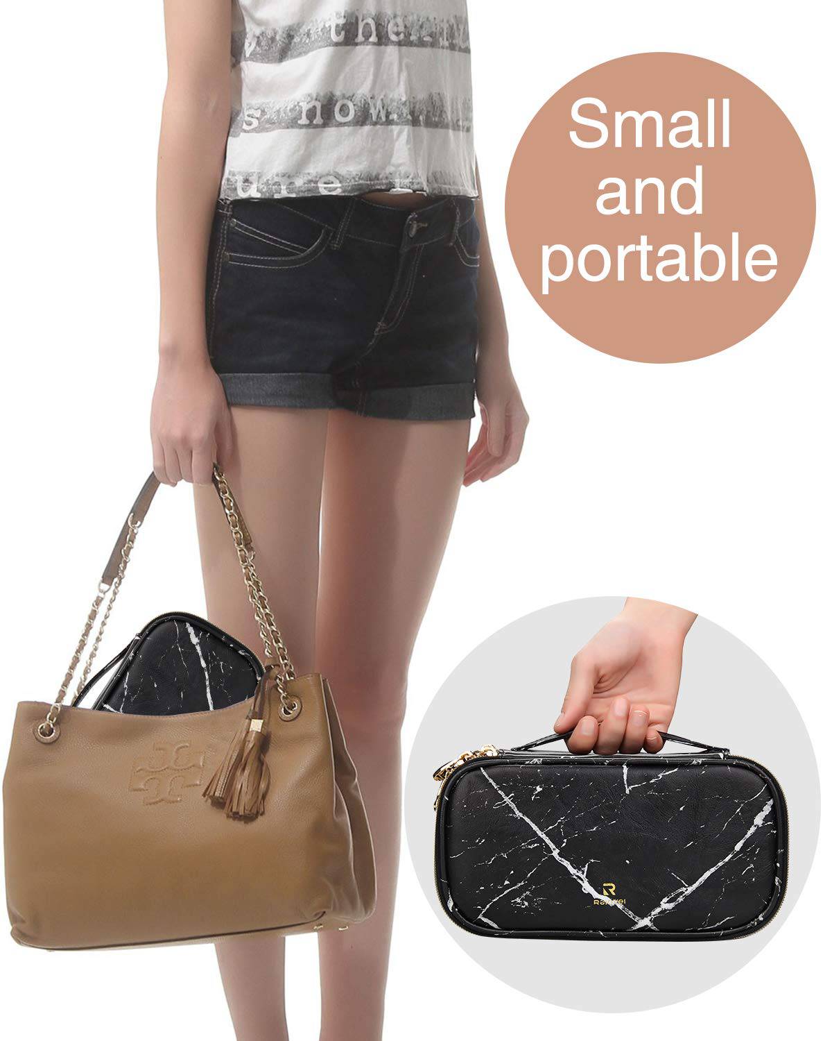 Relavel - Organizador de cosméticos para brochas de maquillaje, portátil, de 2 capas, pequeño estuche de maquillaje, estuche de cuero PU con asa de transporte para viajes (mármol negro) está agotado y se enviará tan pronto como vuelva a estar disponible.