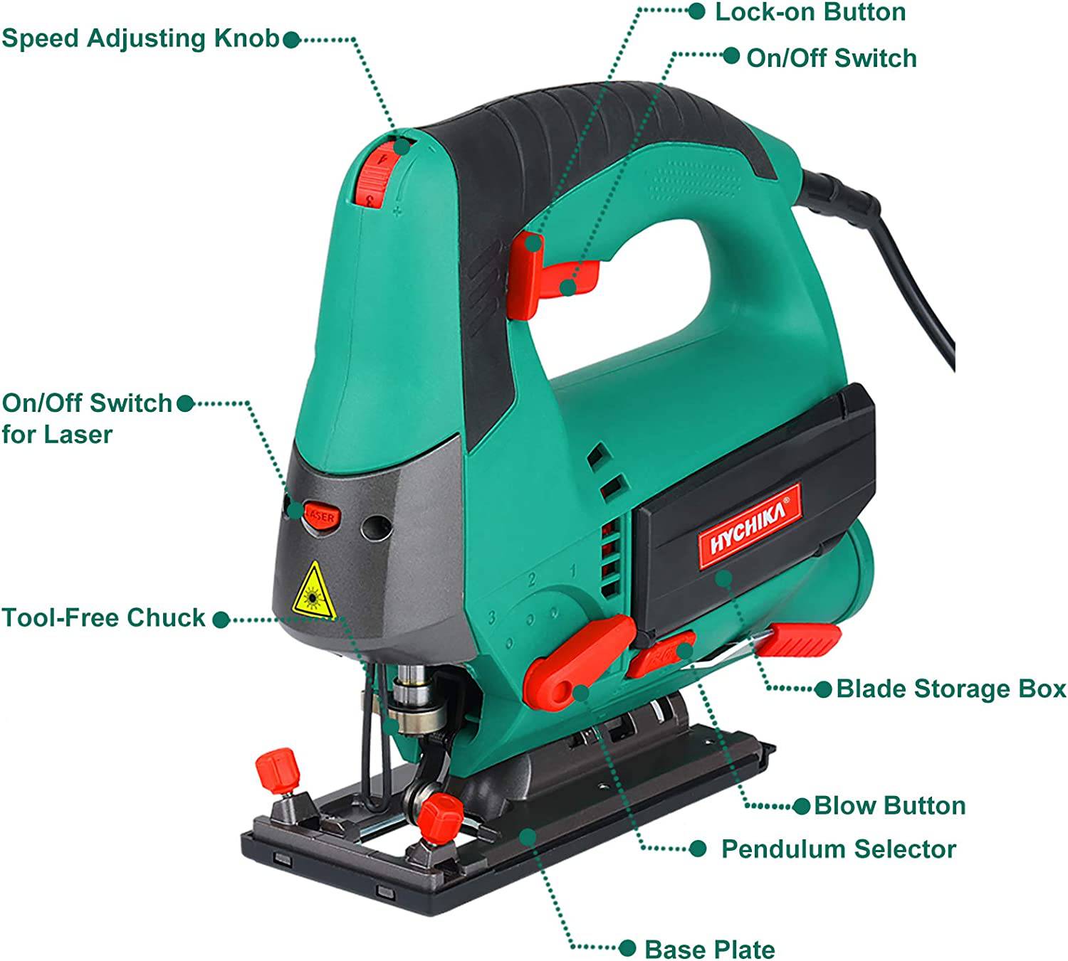 Sierra de calar, 6.7A 800W HYCHIKA Sierra de calar 800-3000SPM con 6 velocidades variables, 4 juegos orbitales, ángulo de bisel 45°, 6 cuchillas, motor de cobre puro, guía láser, estuche de transporte Madera Metal Corte de plástico está agotado y se enviará tan pronto como vuelva a estar disponible.