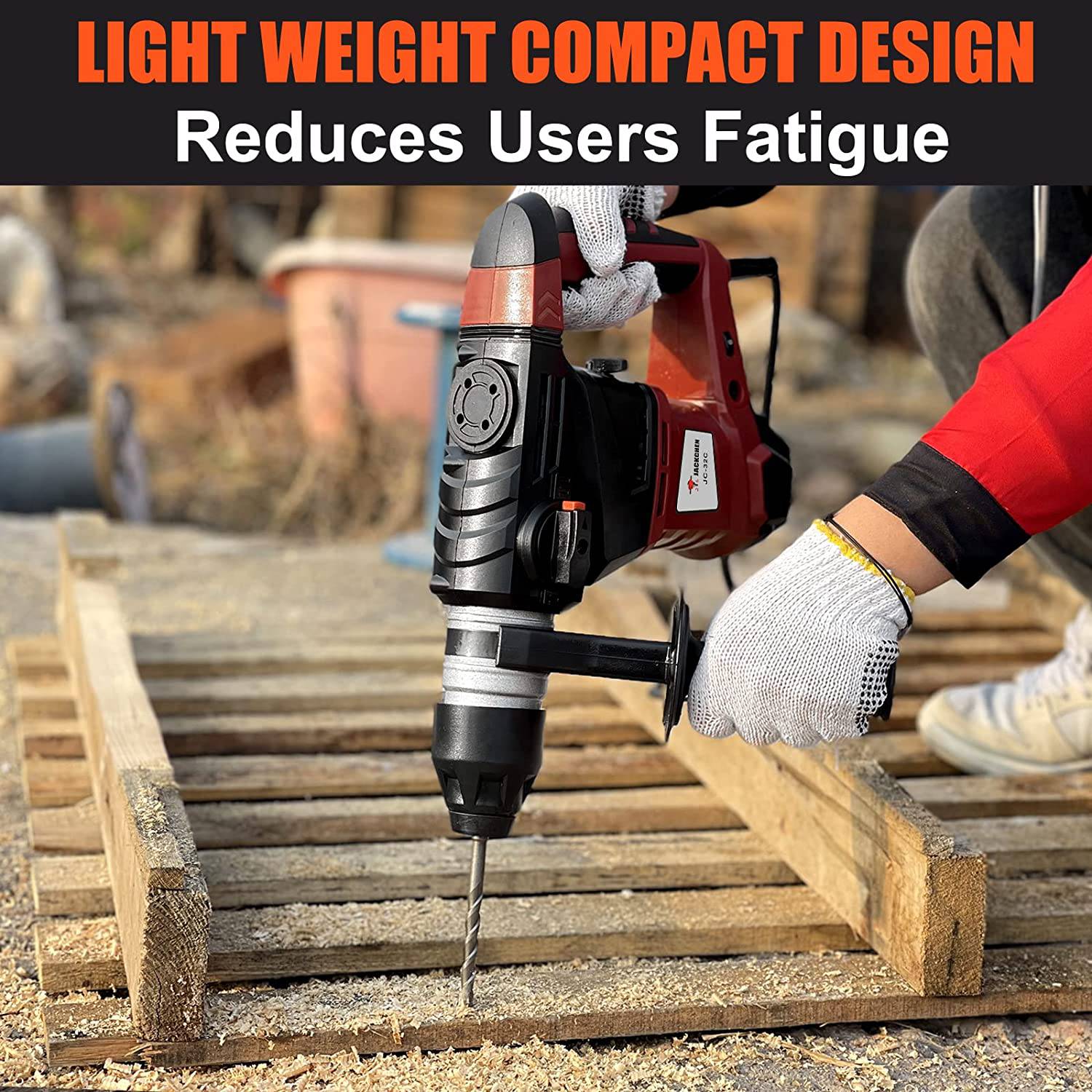 AMPLIA APLICACIÓN:Ideal para tareas difíciles como demoler ladrillos, quitar yeso, quitar azulejos y excavar lechada vieja, adecuado para taladrar materiales como madera, mampostería, hormigón y metal. El martillo rotativo de construcción resistente y confiable es adecuado para profesionales o usuarios domésticos diarios.