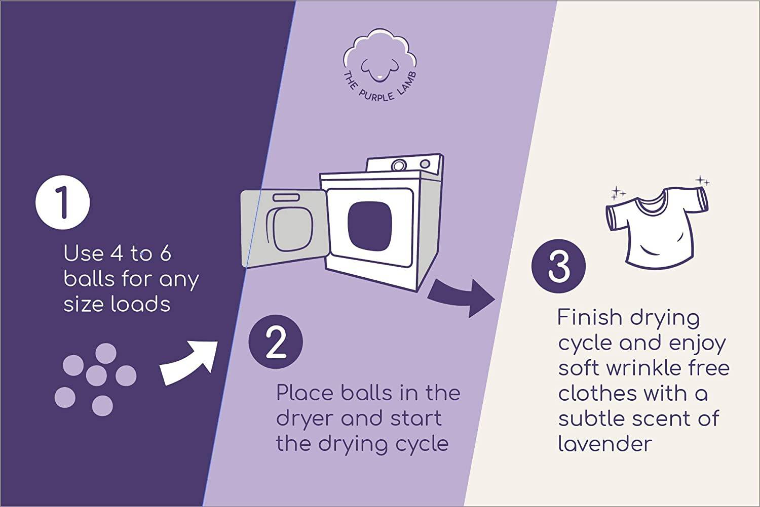 The Purple Lamb Scented Wool Dryer Balls Laundry - Lavanda infundida - Bola de secadora antiestática - Paquete XL de 6 - Suavizante de tela 100% orgánico - Acortar el tiempo de secado - Hecho a mano en Nepal (paquete de 6)