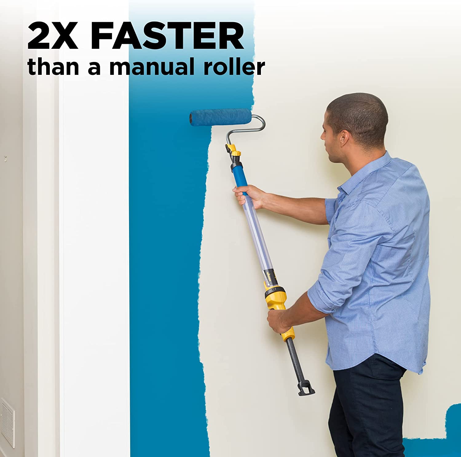 El rodillo Wagner PaintStick EZ ahorra tiempo y energía al pintar paredes y techos, lo que le permite pasar más tiempo disfrutando de su nueva habitación recién pintada.
