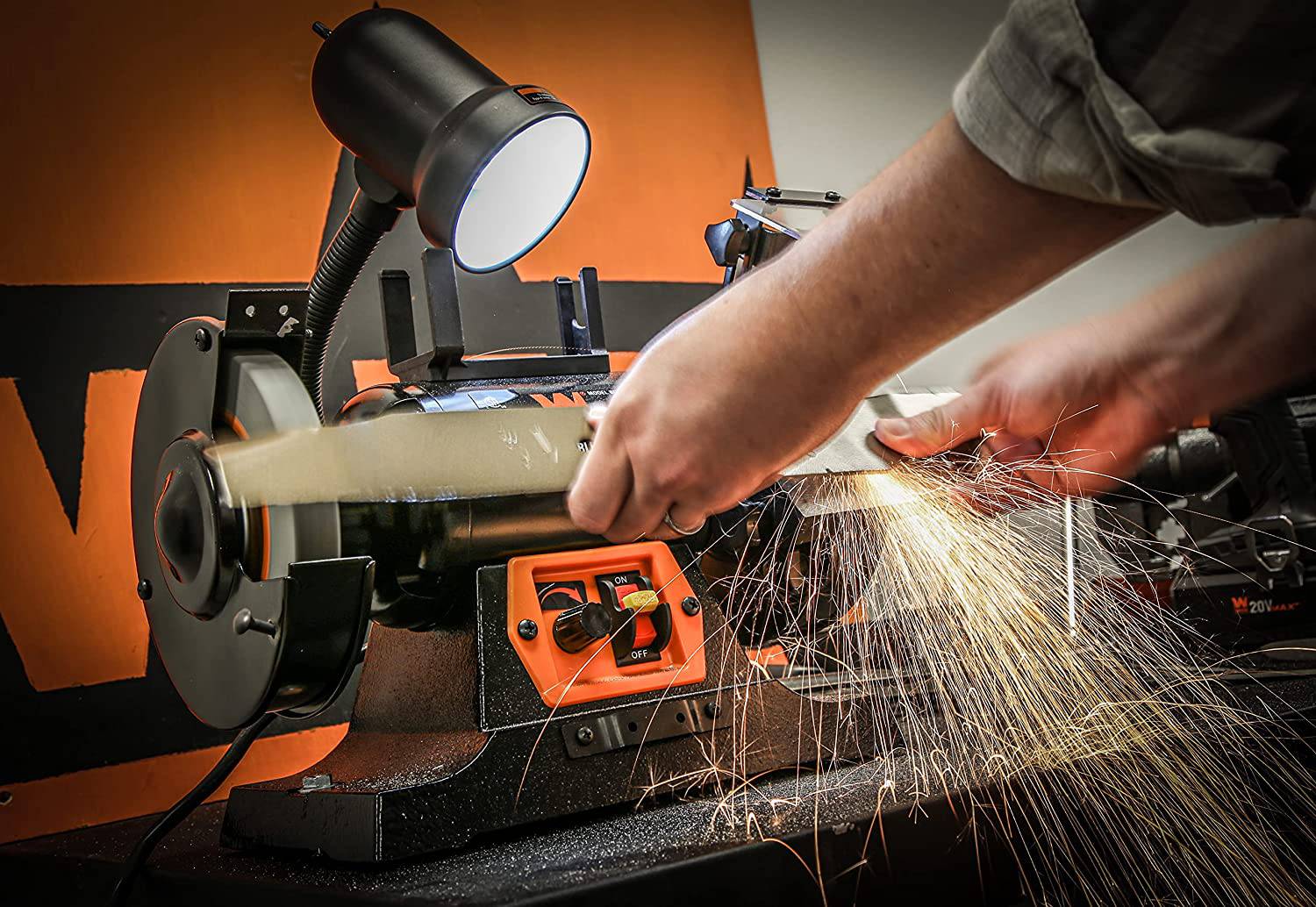 Componentes incluidos Amoladora de banco de velocidad variable de 6 pulgadas y 2,5 amperios con luz de trabajo flexible